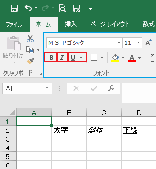 太字にしたり、斜体にしたり、下線を引いたりできる