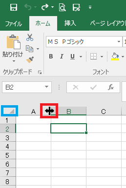 全ての行と列を変えたい場合は一番左上の所をクリックして、同じように変更する