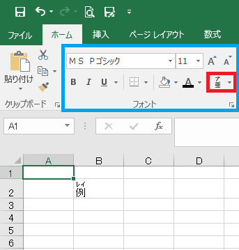 やり方 フォントを変えたいセルを選択してフォントグループの