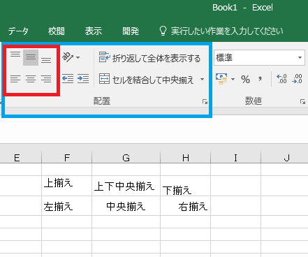 上と下で二個選べる。上は左から上揃え、上下中揃え、下揃え。下は左揃え、中央揃え、右揃え。