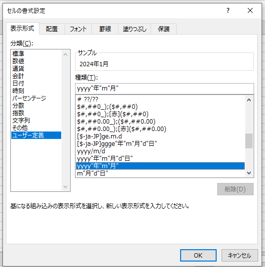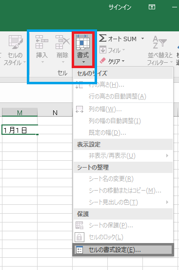 やり方 変更したいセルを選択してセルグループの書式ボタンをクリック、そしてセルの書式設定と書いてあるタブをクリックして変更する。